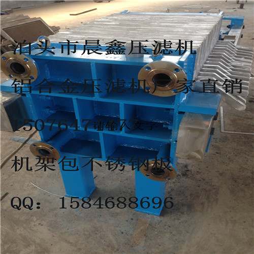 保溫鋁合金壓濾機濾板,內部設有流通管道,可通過蒸汽、熱水或者導熱油來進行濾板加熱。從而達到加熱物流溫度的結果。此壓濾機適合過濾易結晶物料以及隨溫度而變化粘度的物料。此功能的壓濾機解決了很多客戶的物流因流動性不好而無法過濾的情況。
